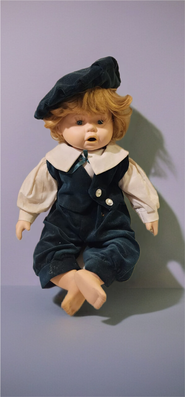 בובת EDMOND מתאימה לאספני בובות, חובבי עיצוב רטרו ולאנשים שאוהבים להכניס לבית נגיעה של קסם אירופאי ישן. הבובה בגובה 50 ס"מ, לבושה בבגדים בסגנון וינטג' מוקפד, עם הבעה עדינה ונוגעת ללב.